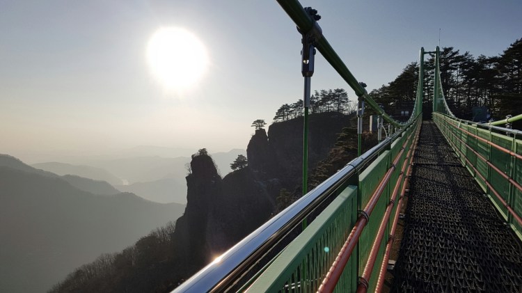 Took a break and switched baby and backpack carrying duty, and thank goodness! After the temple it was stairway to heaven… Up and up and up. My legs are still feeling the burn. At the top we were met with some snow and an absolutely stunning skybridge. Incredible views and exhilarating winter wind. Fantastic! I even found someone’s New Years wishes tied to a shredded purple helium balloon.