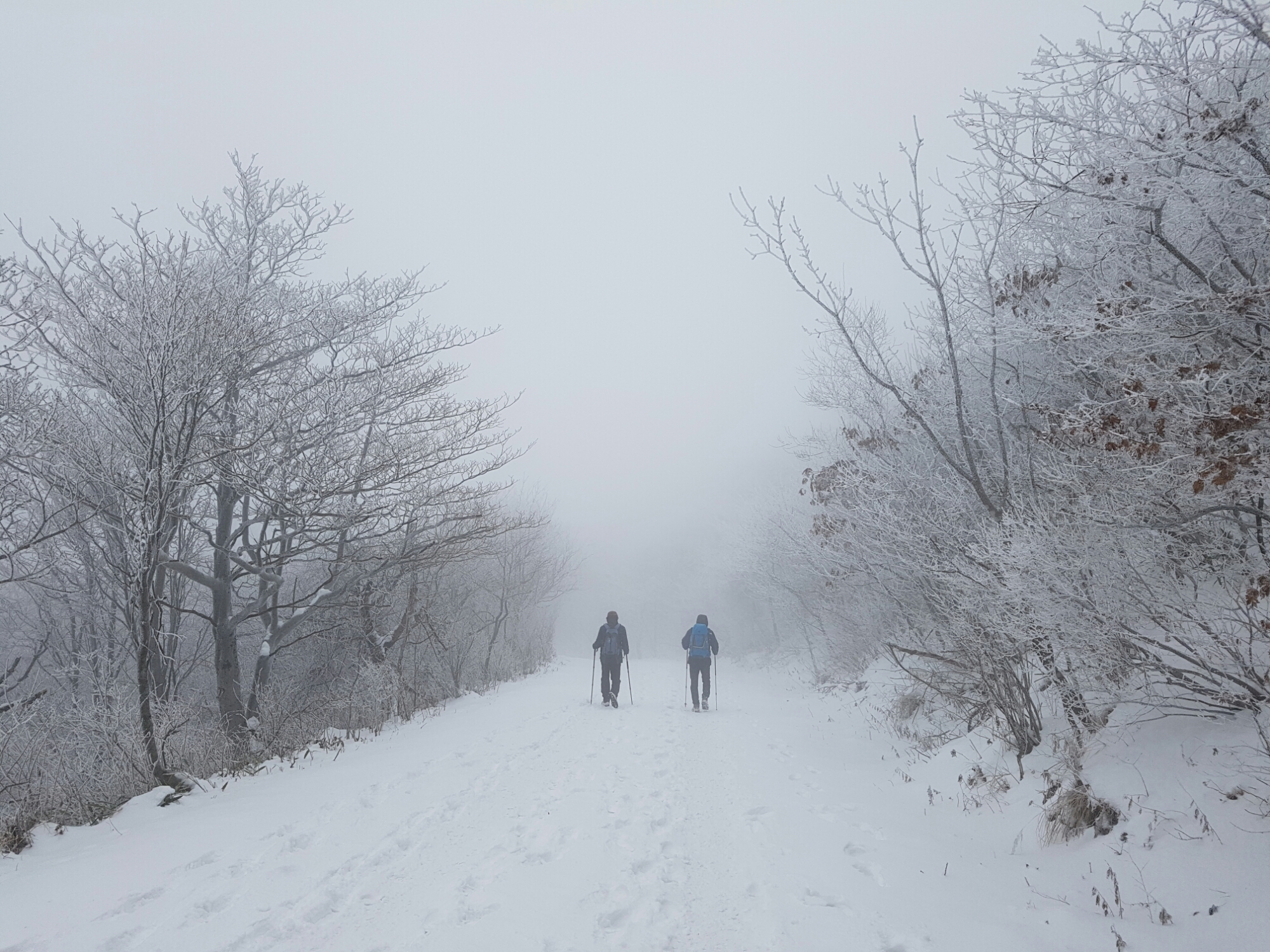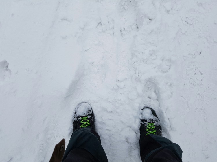 Hiking on the snow-paved trails is much more smooth and good to your knee.It’s all russelled and hardened snow,so it’s much feel comfortable and easy to walk!