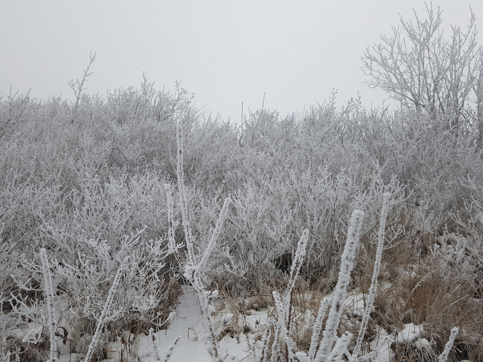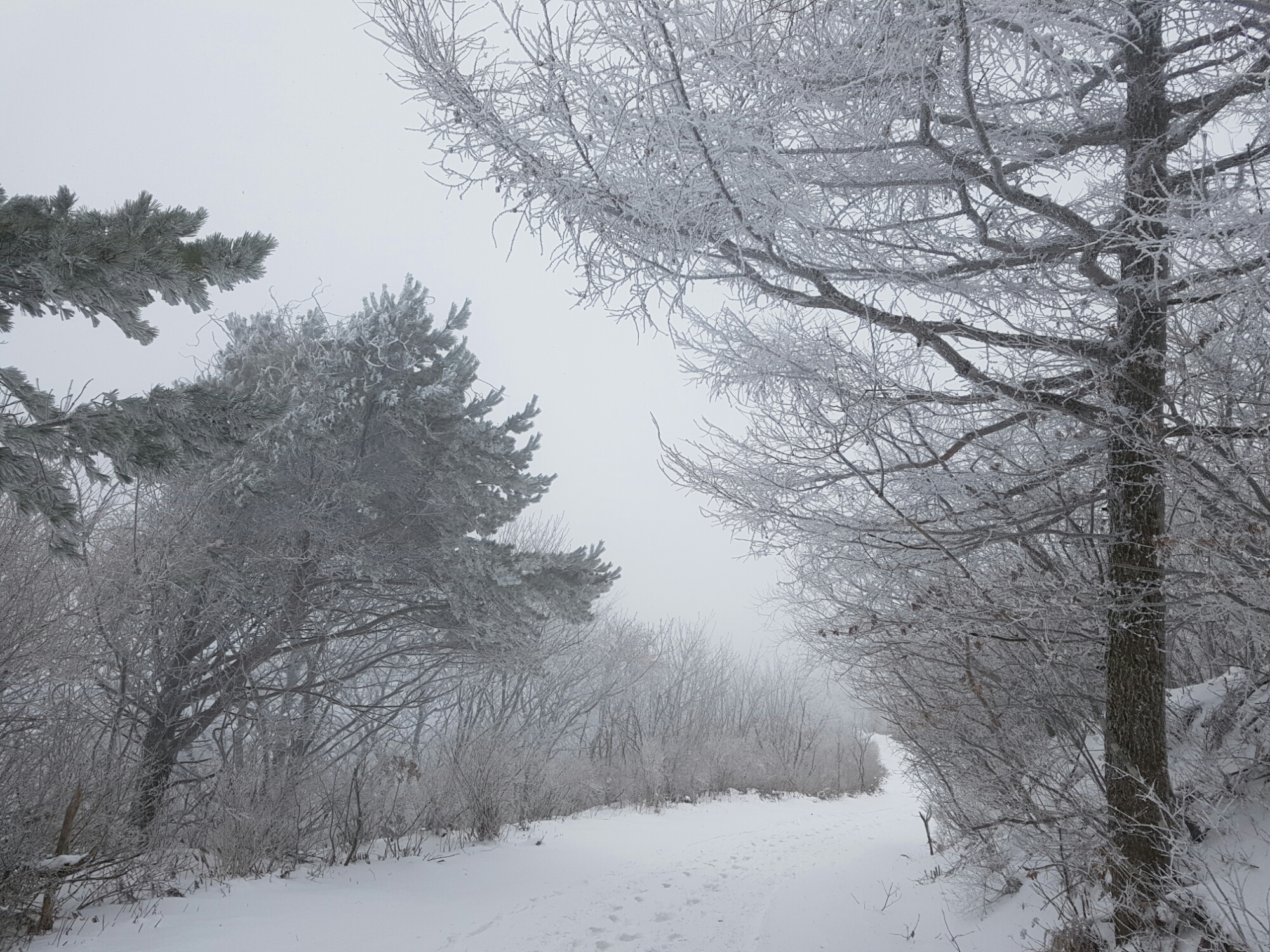 1. snow flowers : at mountain, the wind is cold enough to make snow frozen on the branch and it’s snow covered white tree and the white tree is so-called snow flowers!